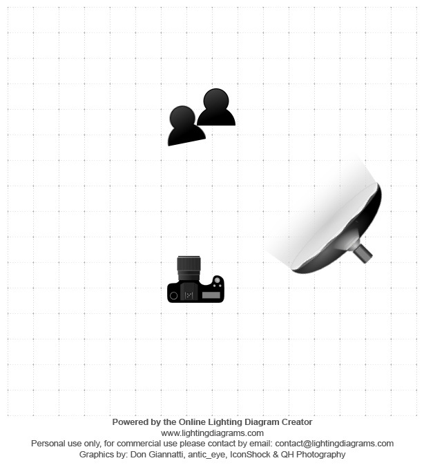 One light 45 degrees from subject with a soft box using high speed sync to darken to the background and get my subjects to pop. This was right after their surprise engagement.