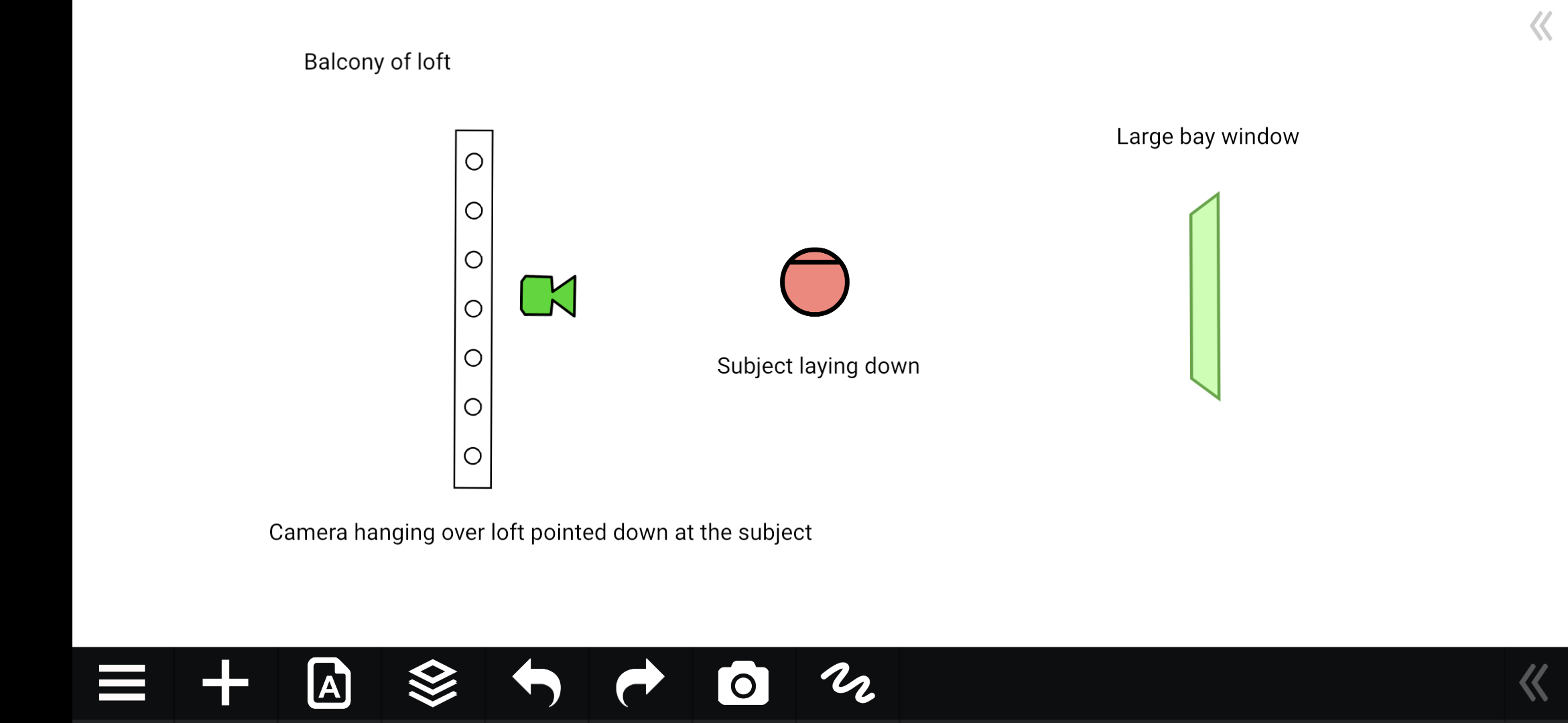 Composite photo of a real subject with a digital background. Shot in studio as I was hanging over the balcony loft. Bay window lit the entire scene with natural lights.
