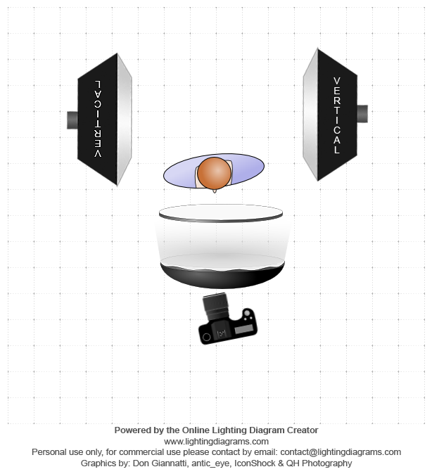 A clamshell set up with a 32 inch diffused beauty dish and a silver reflector for bounce fill for front lighting. Separation edge light was from two strip boxes that were placed slightly behind the model. 24-105 lens was set at 75mm.