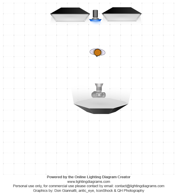 Two 3×3 ProLight Mods were used with 1 Godox AD100 in each. A third AD100 was positioned in between them at about waist height, with a purple gel. A Godox AD300Pro was positioned above camera. Smoke was used behind the subject but in front of the rear lights.