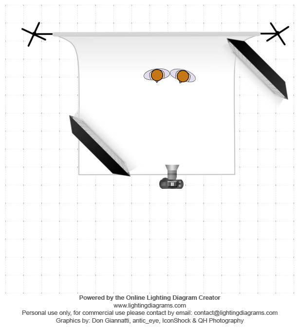 This is a 120cm parabolic soft box double diffused with a grid coming from the left front, and a strip box double diffused with a grid acting as a hair/rim light from the back right. Basic grey background. BTS shot shows the strip box and the parabolic softbox is showing in the top left.