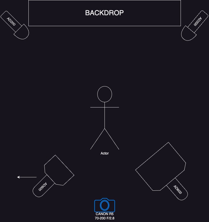The image was taken during a 35th birthday celebration photoshoot. I used a Canon R5, 70-200mm f/2.8 lens, (2x) AD600 , (2x) AD200, 36″ octabox, Grids on every light, MagMod modifiers, Godox Triger,