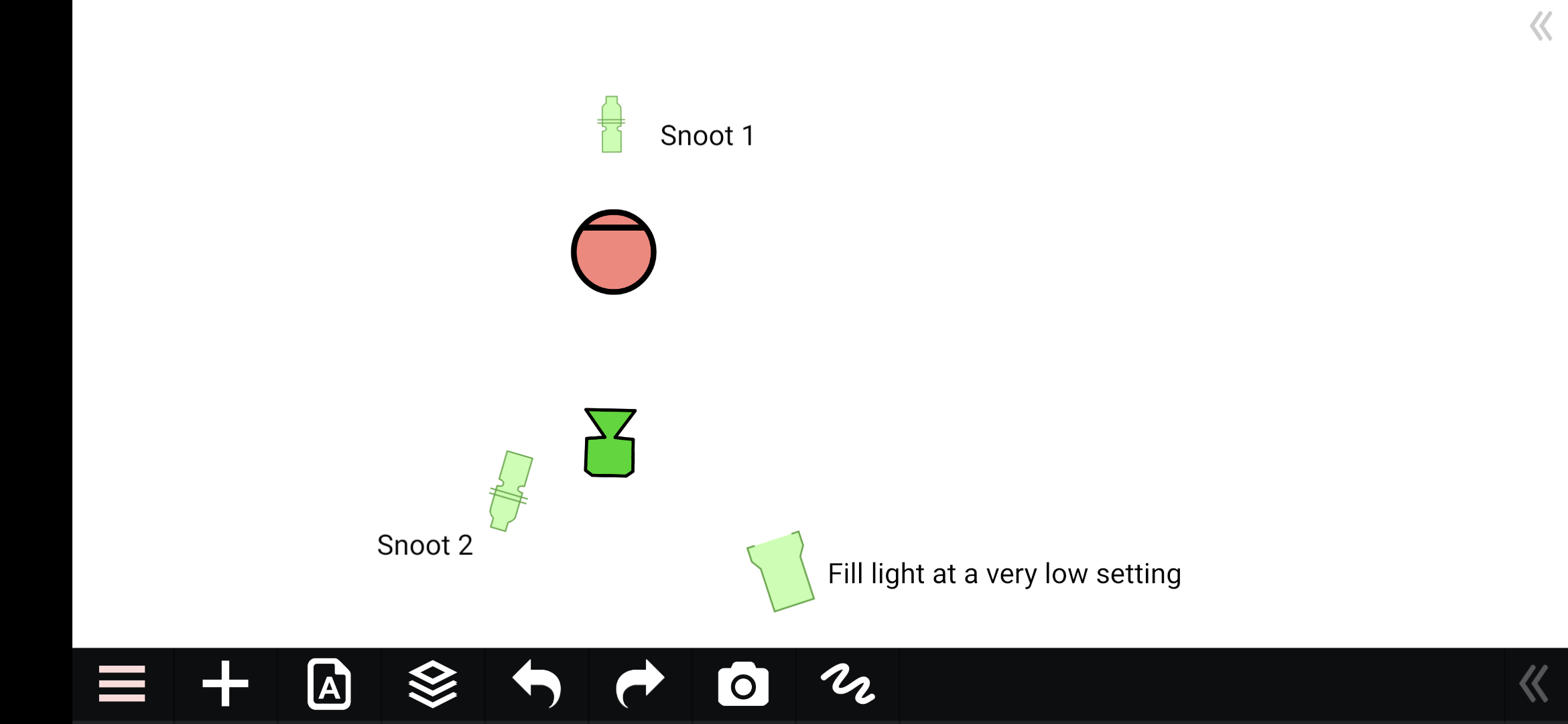 Westcott Optical Spot used on the right eye set up camera left directly over my left shoulder. Snoot pointed at the background to create the circle set directly behind the subject. Fill light at a very low setting set up camera right around the 5 o’clock position.