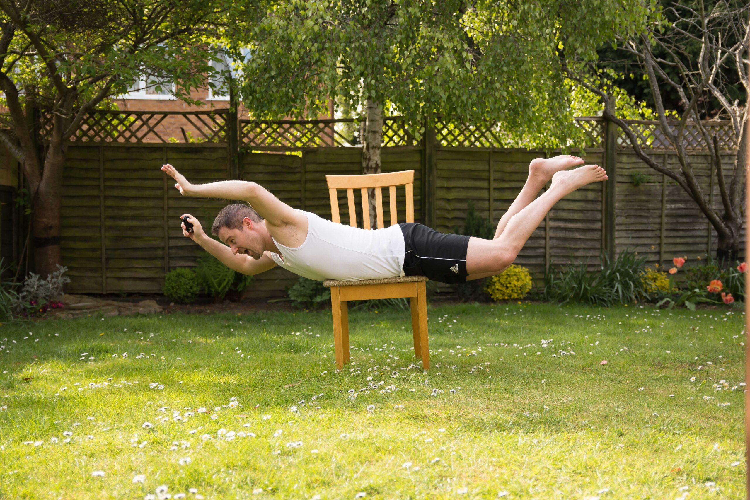 A week after I created the first photo of me “throwing” the baby in the air, I thought why not switch the roles, i.e. baby throwing me into the air! See the behind the scenes on how we did it. (not so) funny story – I bruised my ribs when balancing on just a small part of my ribcage on the chair – my bad obviously which hurt (as if the ribs were broken) 5 weeks after that shot. Still, it was worth the picture! :-)