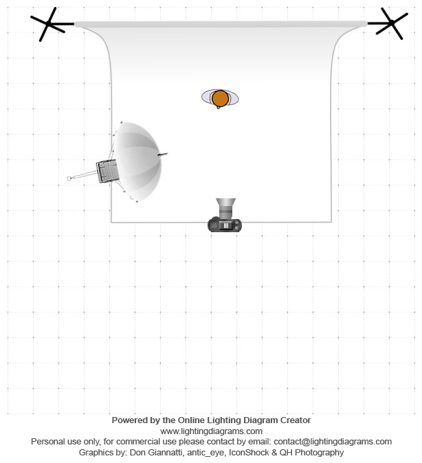 Alien Bee 400 with an 86 inch PLM white shoot through umbrella. Intuition backdrop