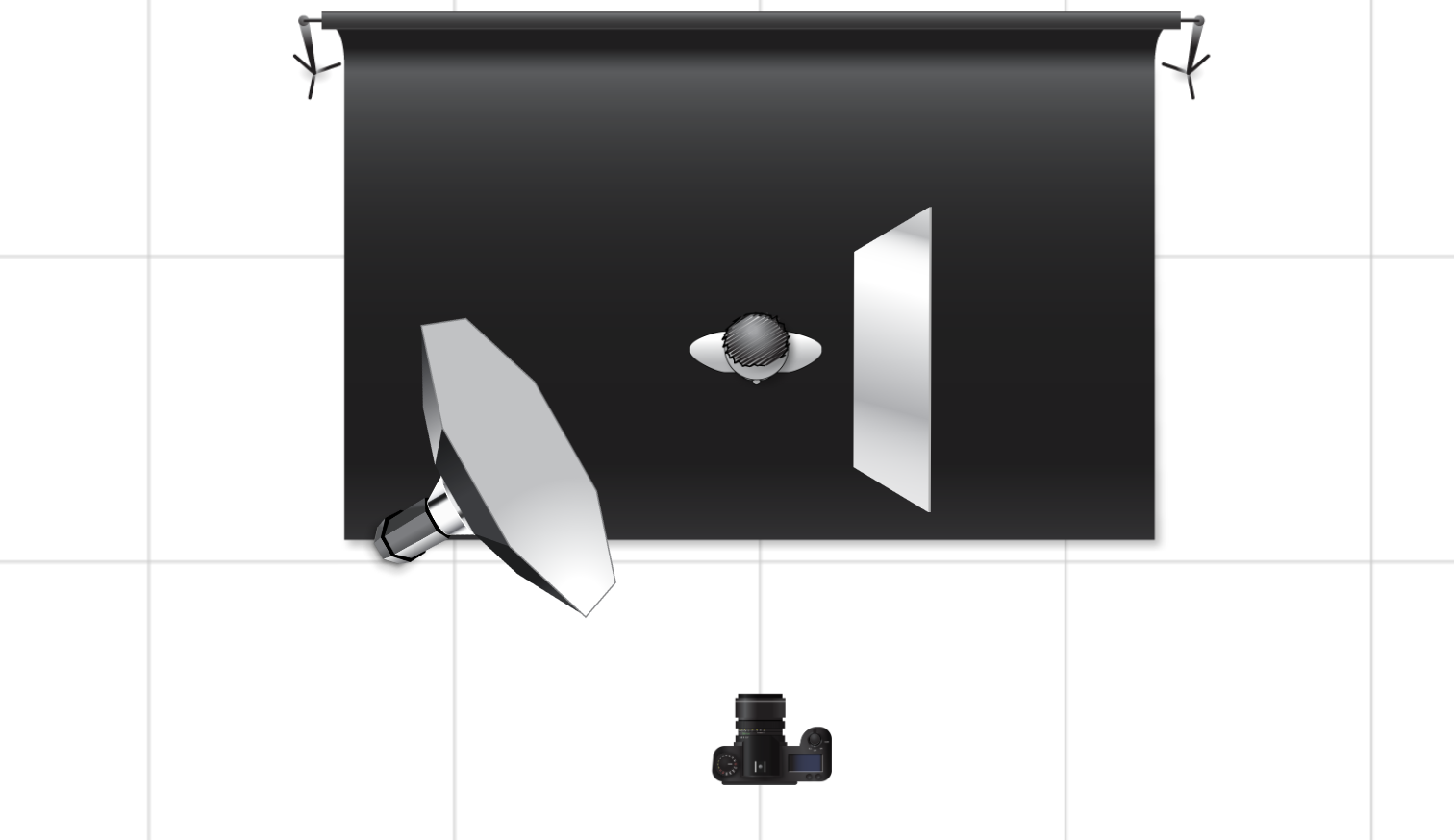 For this image I used a single flash with a softbox 90cm + a reflector to add more details from the shadows. I used a dark gray backdrop.