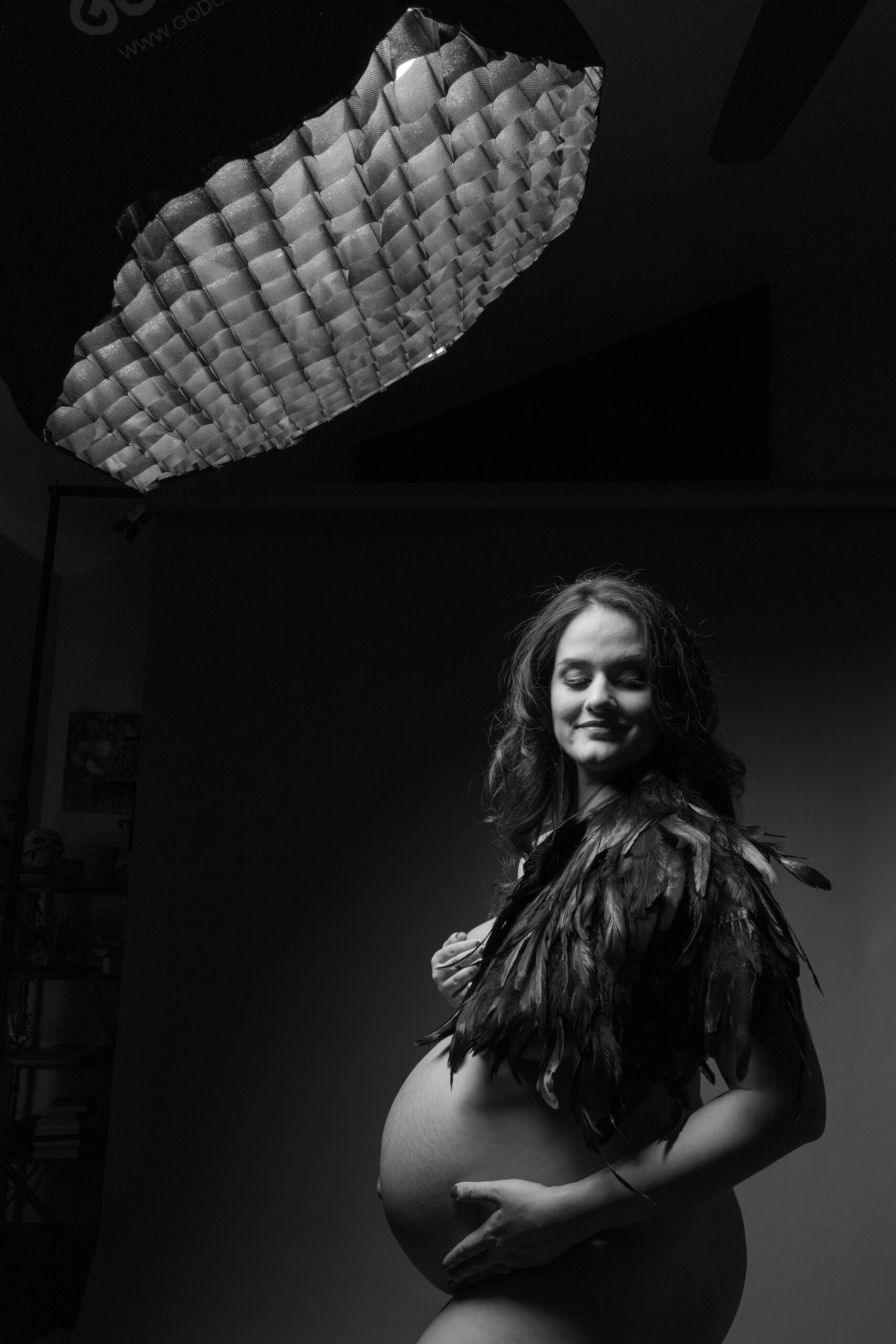 Dark Feminine Small Godox grided octabox with ad200 camera left