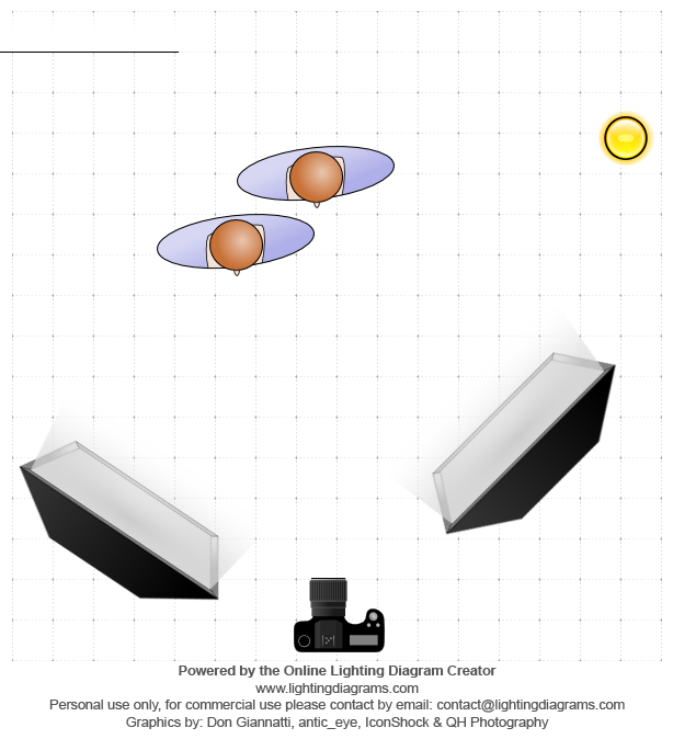 Shot in a movie theater lobby, in front of a large window, sunlight streaming in. Used two 42″ softboxes, one with an AD600, and the other with an AD200.