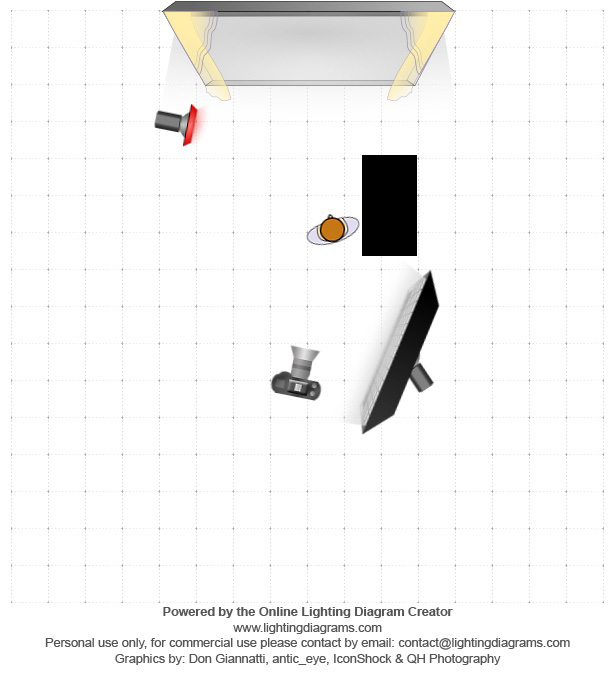 I used three light sources for this image. The main light is a constant light at daylight temperature (camera right) and the red color light is from a Nanlite Forza 60C camera left from above looking down onto the wood furniture behind the subject aimed to just touch her like a kicker light but balanced so some window light brought in the kicker light on the lower part of the frame behind her.