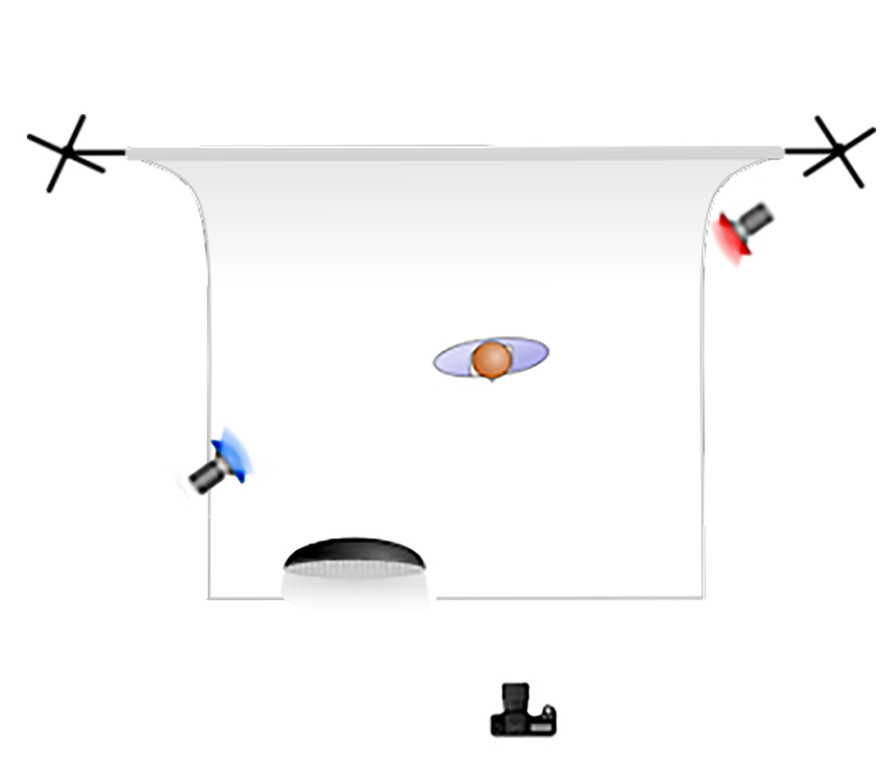 This image was shot with a 3 light setup. A grided beauty dish slight camera left. A blue gel to fill shadows on camera left and a magenta gel camera right behind the model facing her back.