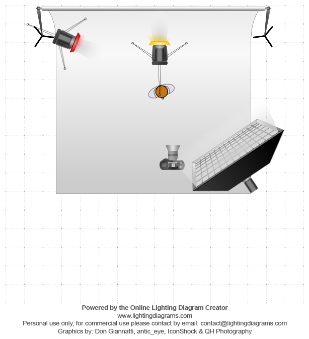 This self portrait was shot in studio. I used a Xplor 300 for my main light with a blue gel and box modifier with a grid. There is a hair light speedlight with a red gel and grid, and a light for the background with an orange gel with no modifier. The backdrop is actually grey in color, but the gel allows for the color to shift! The halo was made in camera with a laser by quickly bringing it above my head. It was a few inches away from center, and I photoshopped it to the middle of my head.