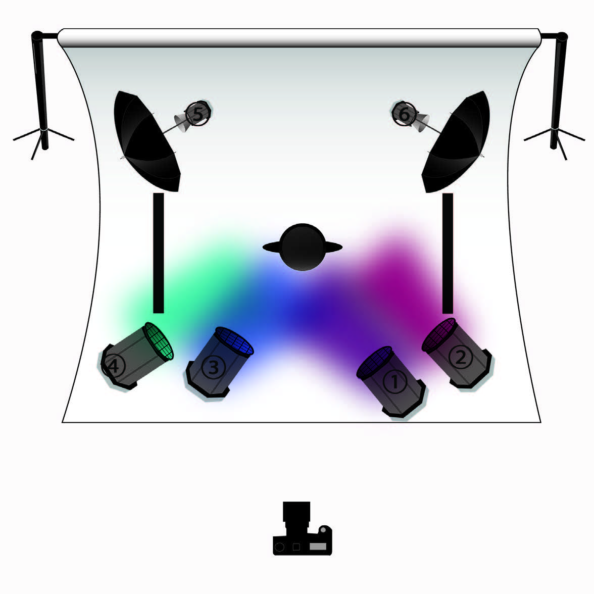 Ok, this one started out with SIX strobes! I had Kimberly on a white seamless paper backdrop, with two umbrella/strobes pointed at background to light the background to pure white. They ended up fading out my gels too much so i turned them off. Kimberly then was lit with four strobes each with a different color gel. The series of images is really cool cuz with each new pose Kim got into, the strobes would light a different part of her body often mixing to create variations of colors. This was a really fun shoot!