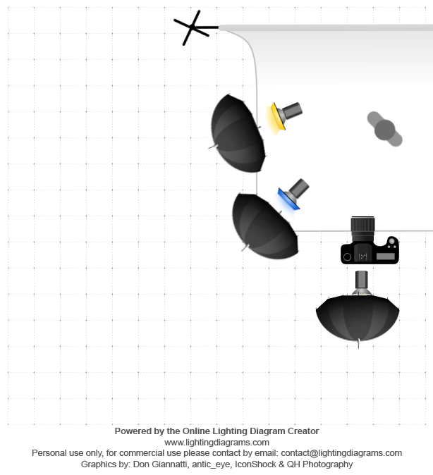 For the Flourish Event, this was a second look with our 60+ model. Keeping the cotton candy theme, the gels really brought this look together. One yellow gel on backdrop on camera left, one magenta gel on her back and toward backdrop on camera right, and a light blue gel feathered toward her, plus a non gel strobe behind camera and directly in front of her.