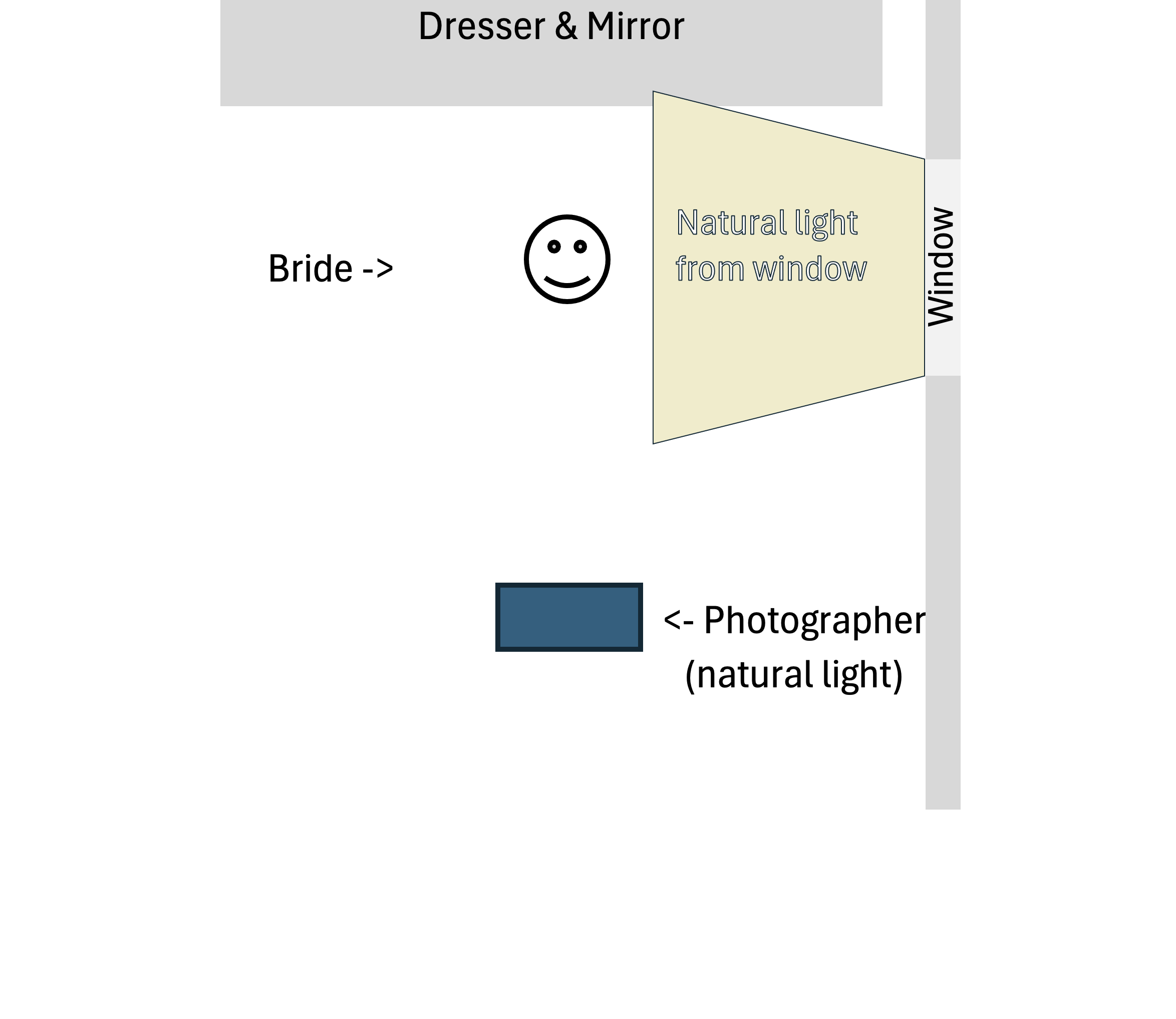 Time with the bride once she is dressed and ready is imperative to the success of a good wedding portrait. It allows her to settle into the moment and reflect some before the ceremony begins. Shooting with natural light coming from an available window to the photographers right, the bride calmly looks into the Canon EOS R camera paired with the (nifty-fifty) Canon RF50mm F1.8 STM.