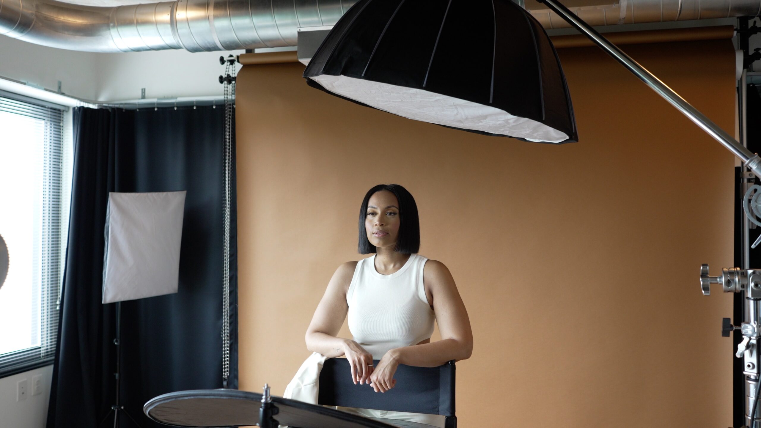 The image was shot with the Manny Ortiz beauty dish and a reflector underneath to bring out the beauty in her portrait. Backdrop was savage seamless paper and I like the chocolate brown. I had a hint of natural light coming from her left side and camera right.