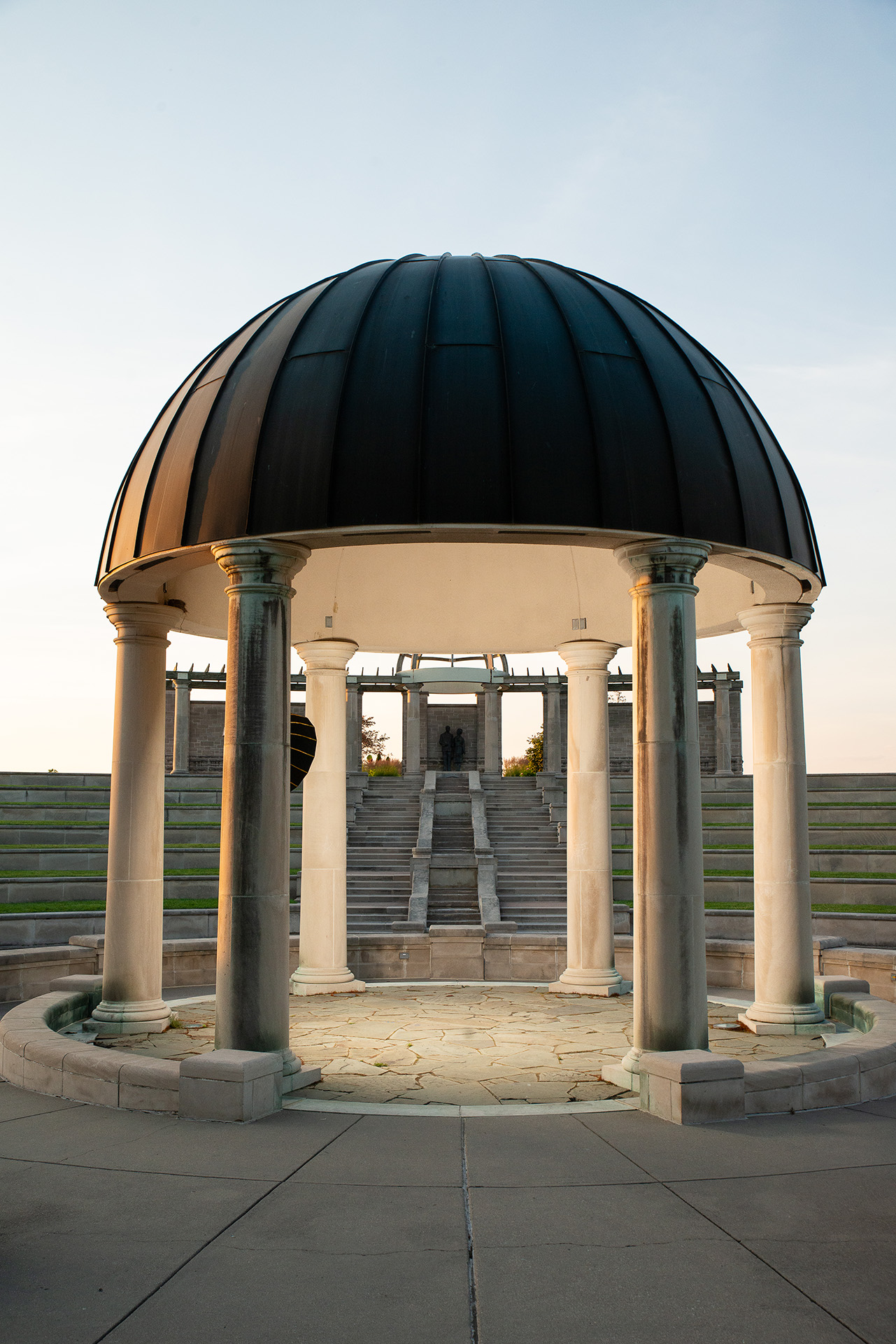 This is a shot we did for the finale of one of our High School Senior Sessions. There is a large stone gazebo in the center of a stone amphitheater. We waited until sunset and then placed her in the middle of the gazebo and then hid a Westcott FJ400 with a 27″ beauty dish behind the front left pillar above eye level pointed down at the model (some of the dish had to be edited out). This makes it look like the light is emanating from the gazebo itself