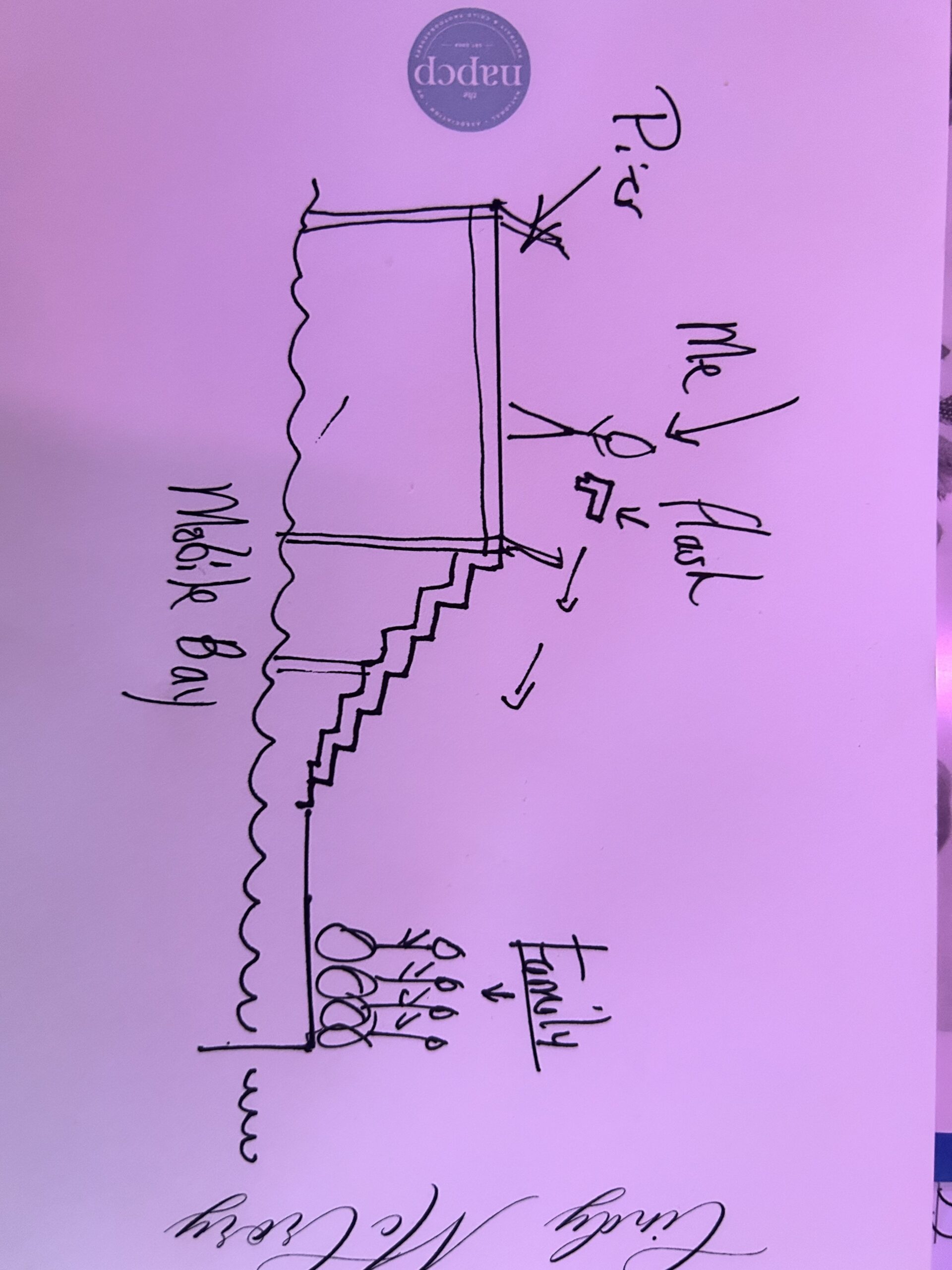 This photograph was taken at 7:15 pm in the moments before the sun went down. We were on a pier and I asked the family to step down to the lower fishing level, turn around, and I ensured the water surrounded them as the backdrop. I bent my speedlight toward them. I was approximately 15 feet above them and 20 feet away from them.