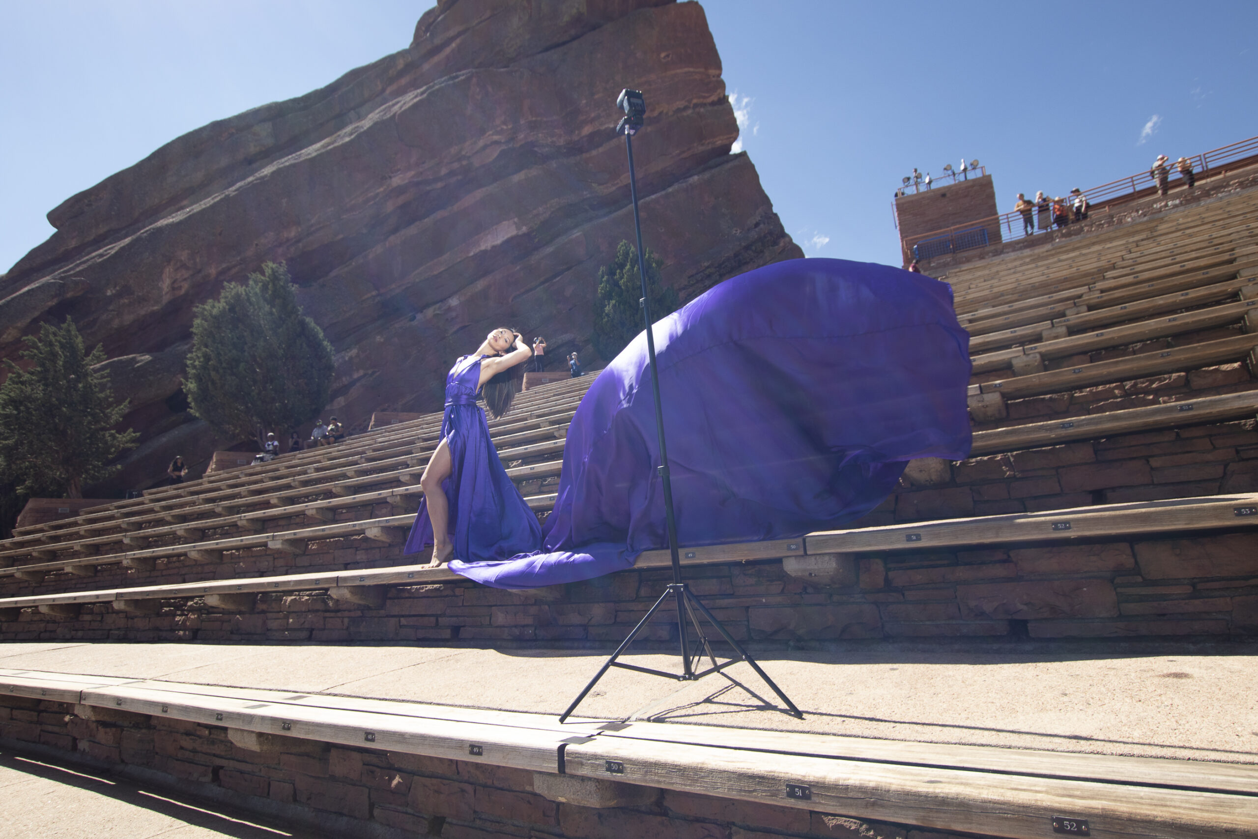 I did high-speed sink. I shoot this at Red Rocks Amphitheater, With Jessica Lee from #16 from Deal or No Deal. With a flying dress. No modifiers because it was hard light.