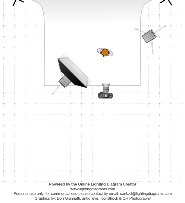 In my studio. White backdrop, light clothing. rectanglar softbox, hair light.