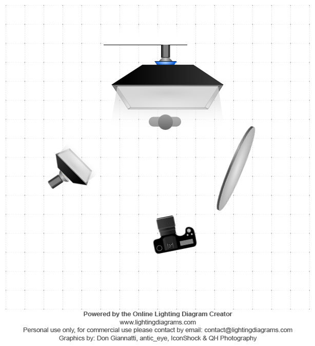 Two lights were used for this image, both made by Paul C. Buff. One was a link with a 47 inch octabox with a purple gel from behind her, and the other was an Einstein with a small modifier from the front.